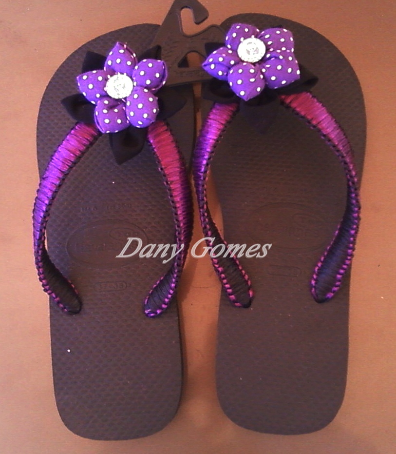 CHINELOS DECORADOS COM FITA DE CETIM E FLORES DE TECIDO